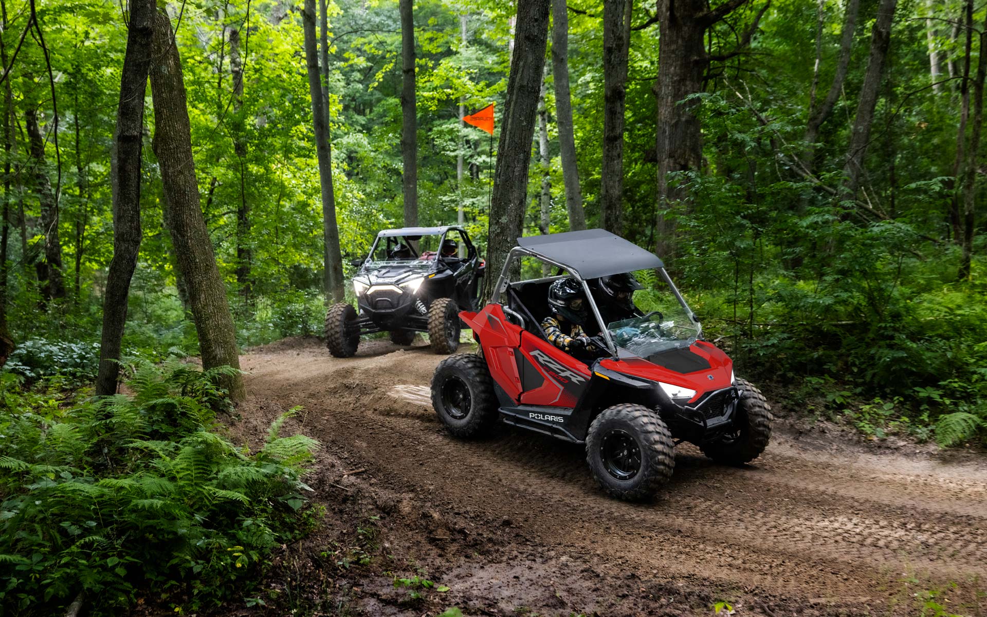 Le RZR 200 accompagne vos enfants de 10 à 16 ans tout au long de leur progression grâce au moteur EFI de 180 cm3, au siège et volant réglables, le siège passager et les accessoires en option.